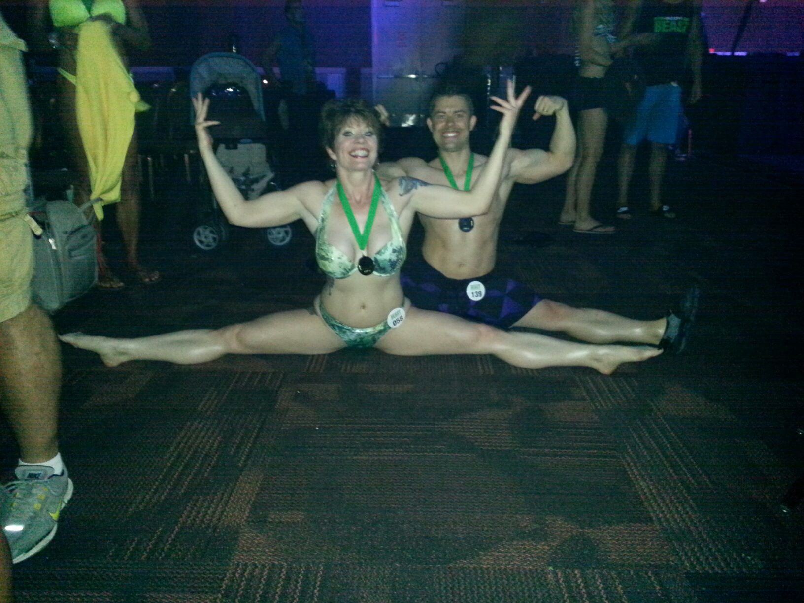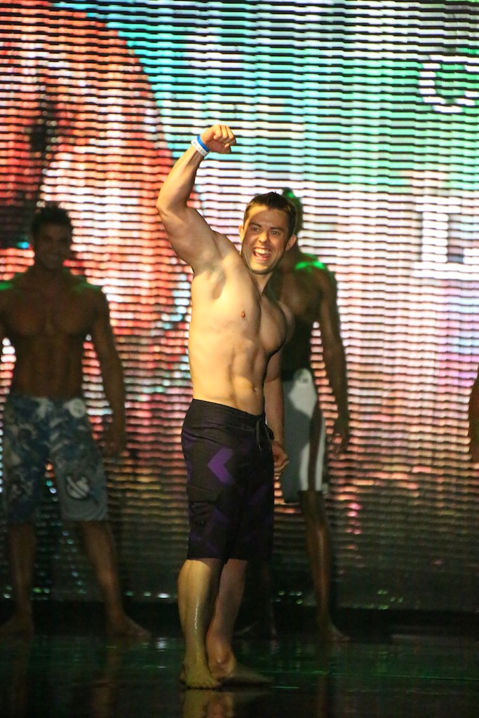 The next day was the actual show and it was nerve-racking and exciting at the same time. Nothing like getting in front of a couple of thousand people in nothing but board shorts. I was on of the top 10 finalist which was my goal. Take a look I should be the fifth person (yes I do the splits):