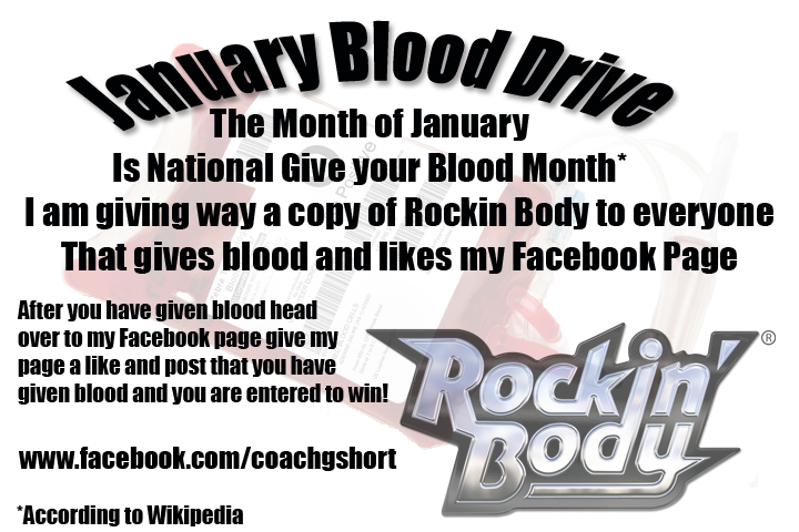 So I was looking around and according to Wikipedia January is National Volunteer Blood Donor Month. So to encourage more people to give blood this month I will be giving away a copy of Shaun T’s Rockin’ Body! So what do you have to do to enter?